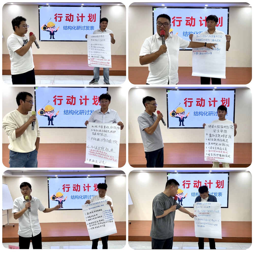 培训中设置了交流座谈与主题研讨,促进思想碰撞,解决实际问题。由课程组长参加深度座谈,解决学员在工作中的困惑,并组织学员代表进行工作经验交流分享。此外还围绕项目安全环保相关问题开展主题研讨,学员们把结构化研讨的成果以小组为单位进行汇报展示,推动学以致用。
