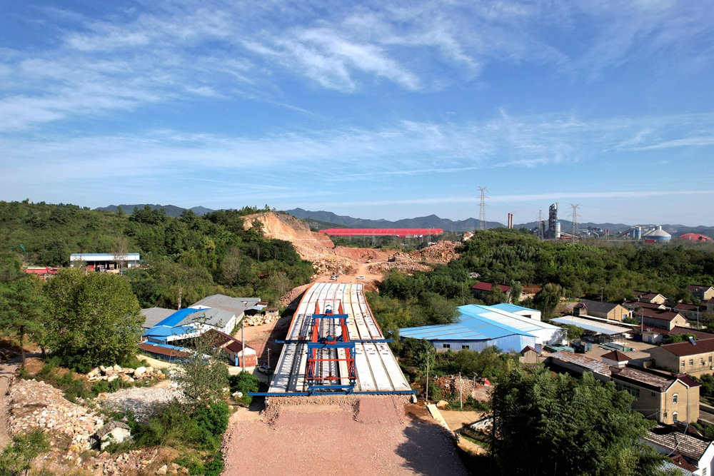 在S22天天高速YQB2标关键控制性工程——皖水河特大桥施工现场,项目部紧盯施工节点,压实责任抓落实,顺利完成首片预制箱梁架设。