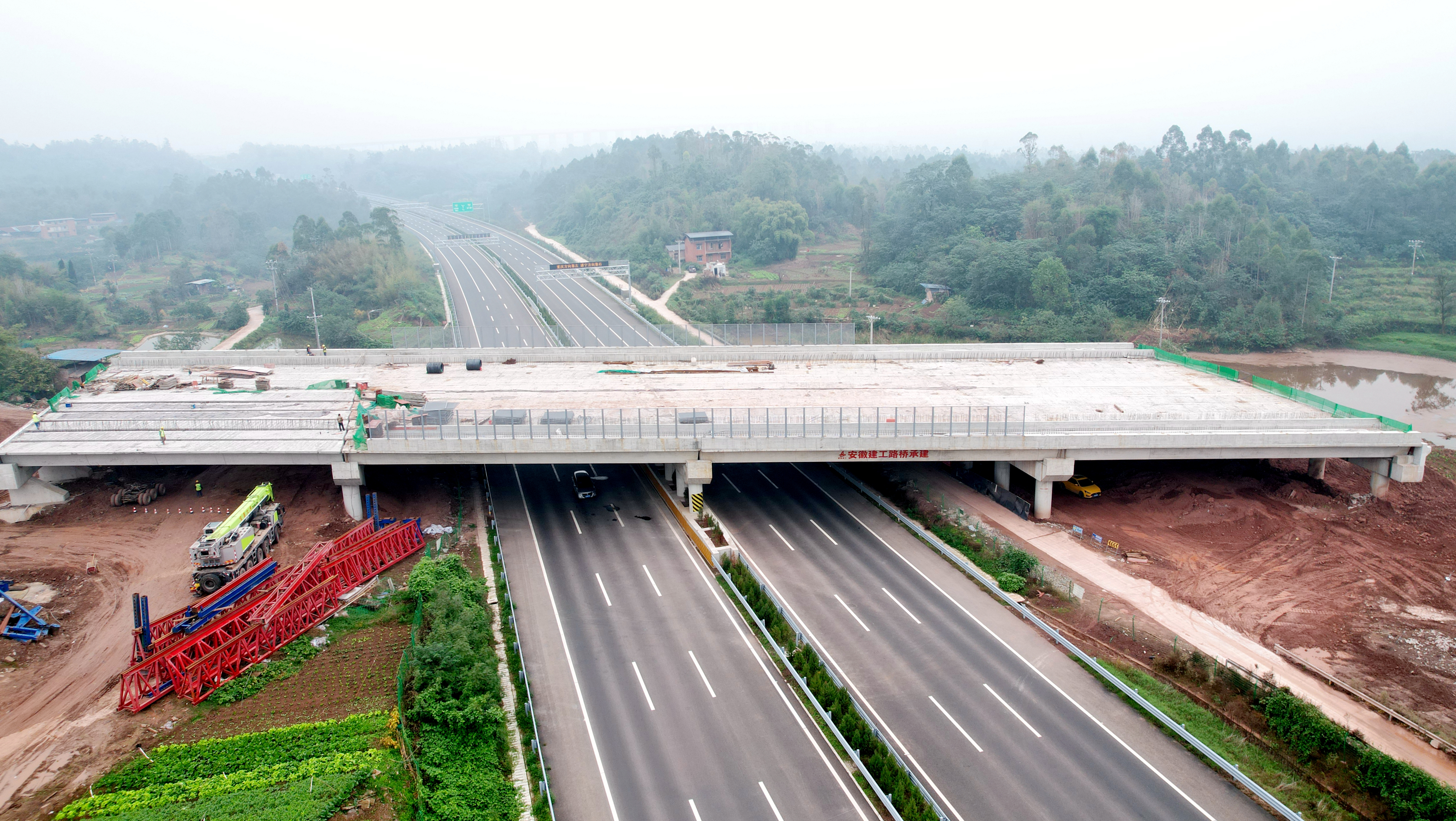 11月15日,随着最后一片箱梁成功架设,公司在渝首个EPC项目——重庆铜梁项目金浦大道铜安高速上跨桥主体工程圆满完成,项目进入桥面系施工阶段。
