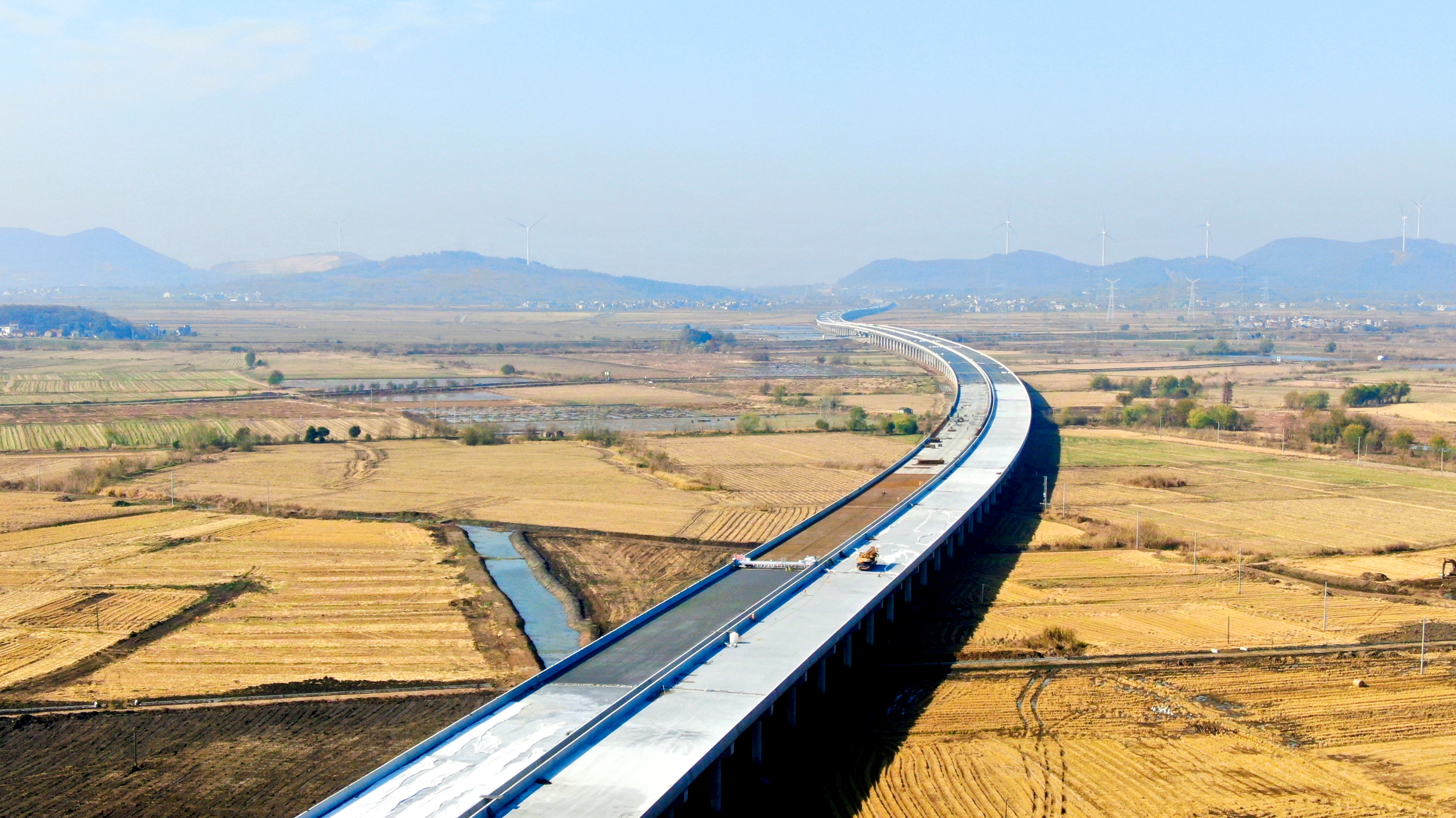 永安河特大桥全长5163米,是项目关键控制性工程之一,共计1960片梁板。自首片梁板开始架设以来,项目团队周密部署,确保各环节安全高效、紧密衔接,顺利完成梁板架设任务。