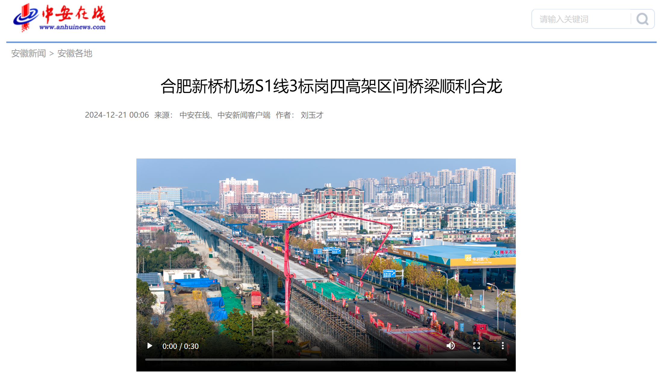 【名媒聚焦】央广网、安徽日报、中安在线等主流媒体聚焦报道合肥新桥机场S1线3标岗四高架区间桥梁合龙