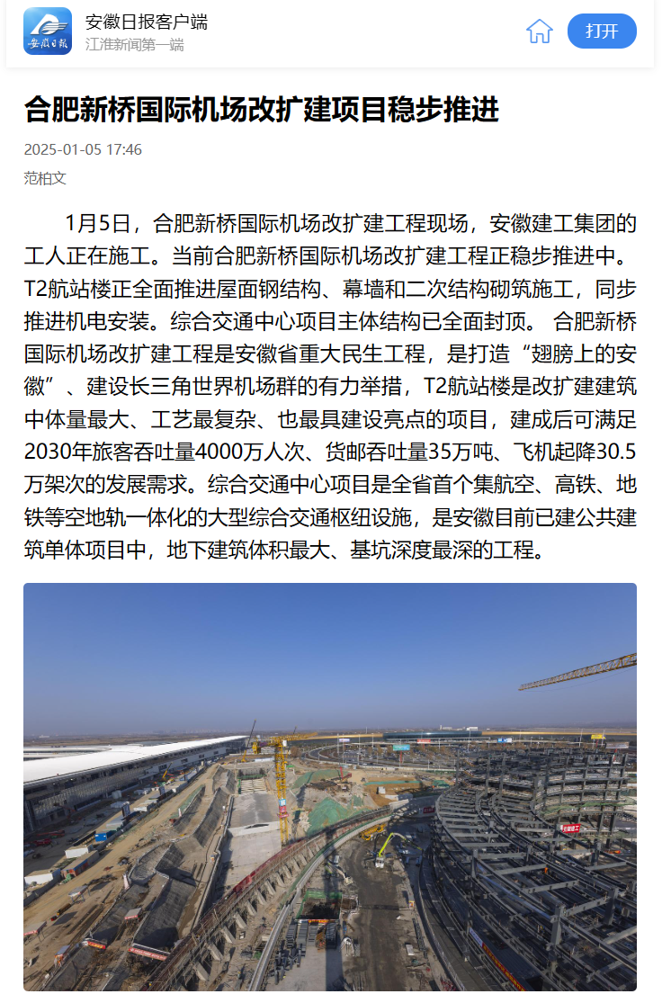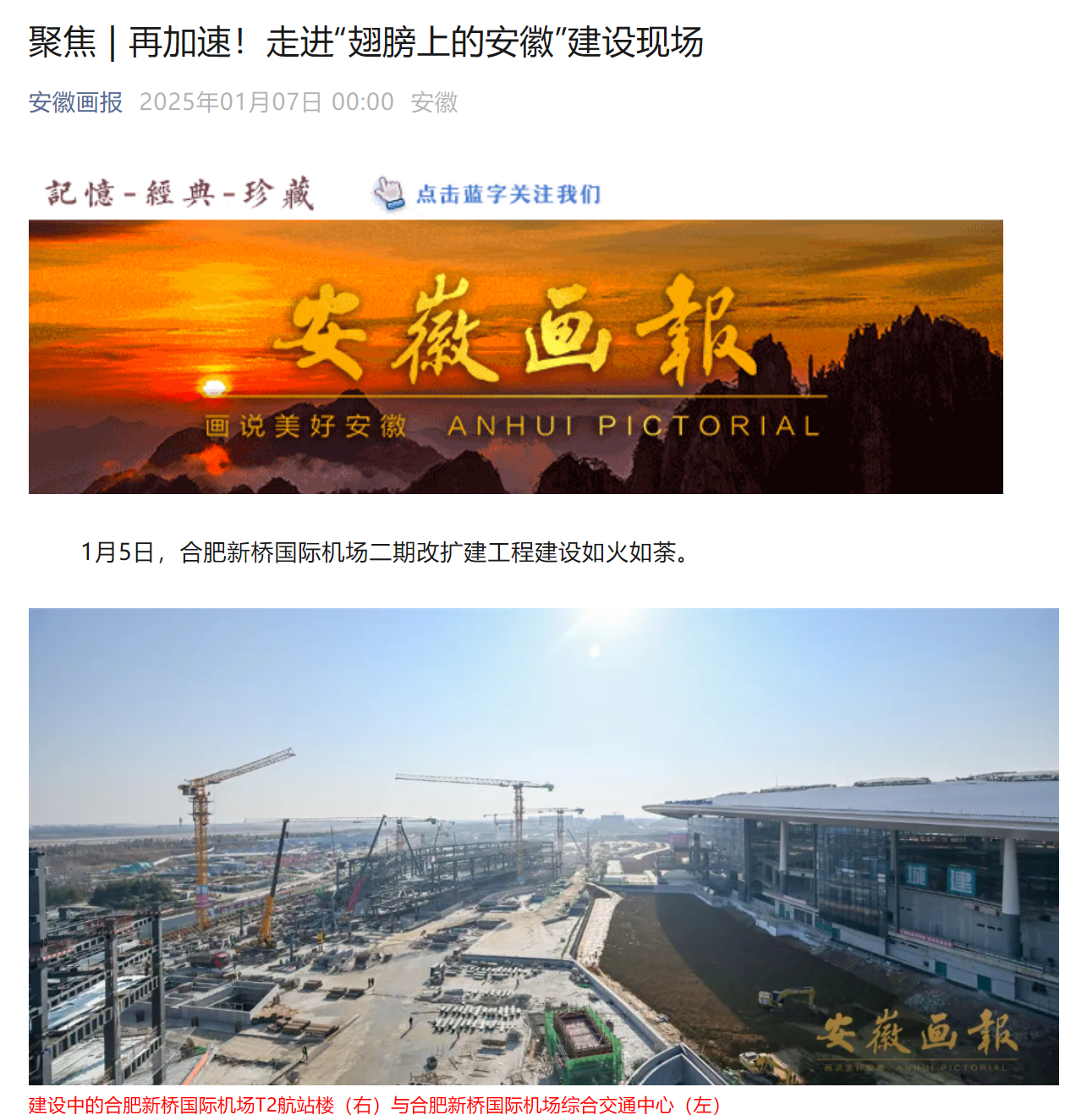 【名媒聚焦】安徽日报、合肥新闻联播等省市主流媒体关注报道合肥新桥国际机场综合交通中心项目