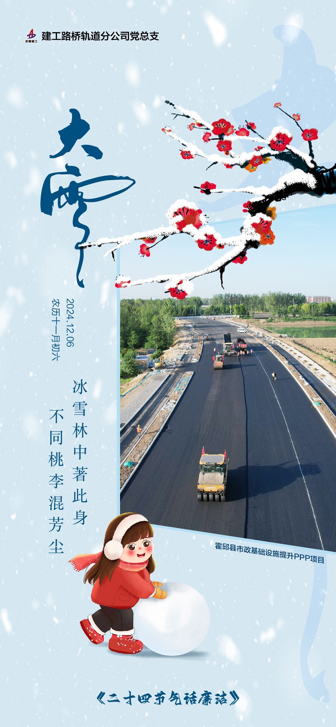 创新推进“节气话廉”。分公司积极探索创新廉洁文化“打开方式”,坚持守正创新,将节气特征、廉洁故事与清风廉语充分融合,精心制作“节气话廉”宣传海报,让党员职工在潜移默化中感受到有温度和底蕴的廉洁教育,截至目前,已发布系列海报16期。