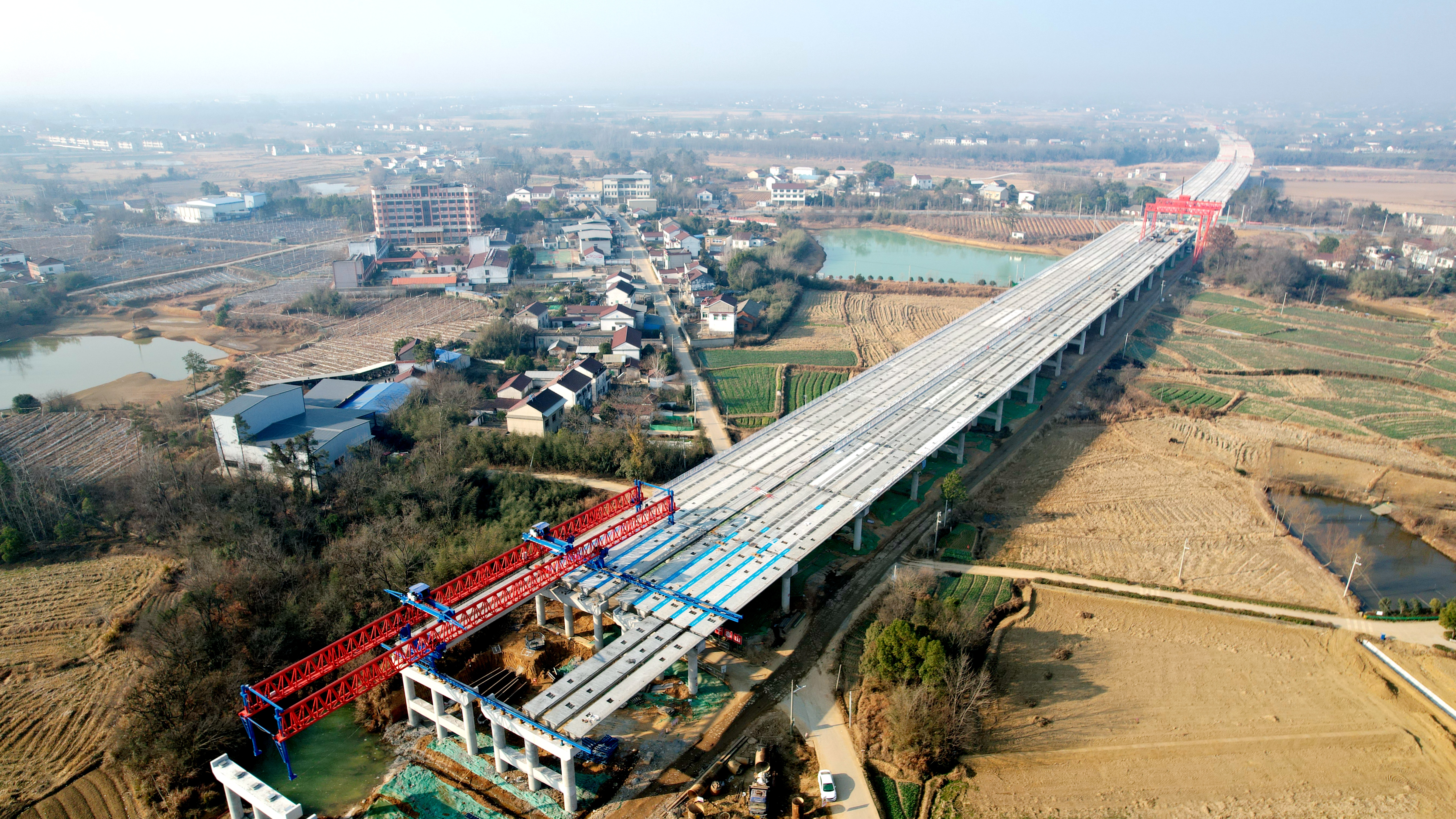 皖水河特大桥全长3.59km,横跨皖水河、梅河、珠流河三条河流,跨越016乡道及多条管道,跨度大、交叉施工多。从第一根桩基施工以来,项目围绕工期节点不断优化施工方案,狠抓现场安全质量管控,全力冲刺阶段性目标任务。
