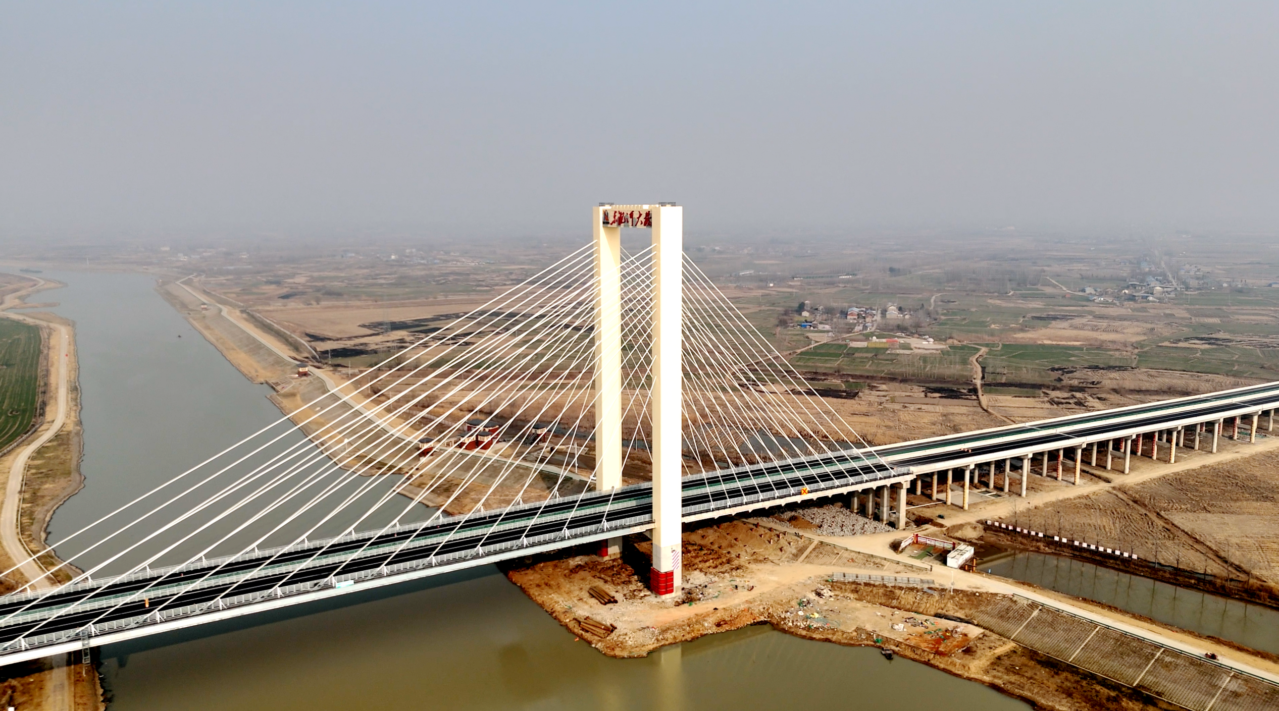 东淝河特大桥全长4.19千米,横跨寿县双庙集镇与保义镇,主桥为95+175米独塔斜拉桥,塔柱采用“门”型造型结构,塔高109.553米。