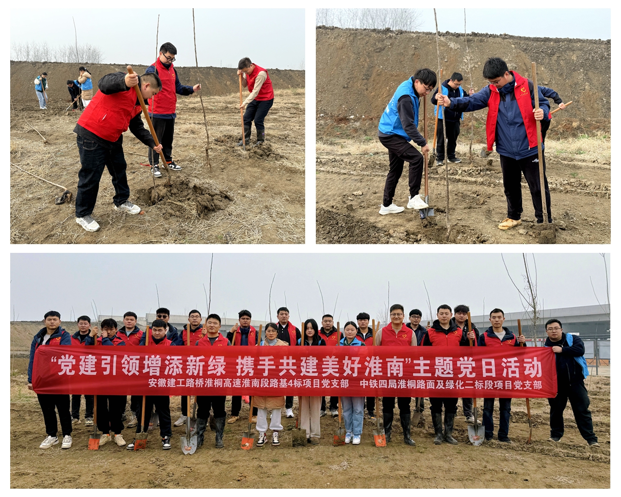 淮桐高速淮南段路基4标项目党支部联合中铁四局淮桐路面及绿化二标党支部在李山互通联合开展“党建引领增添新绿,携手共建美好淮南”主题党日活动。