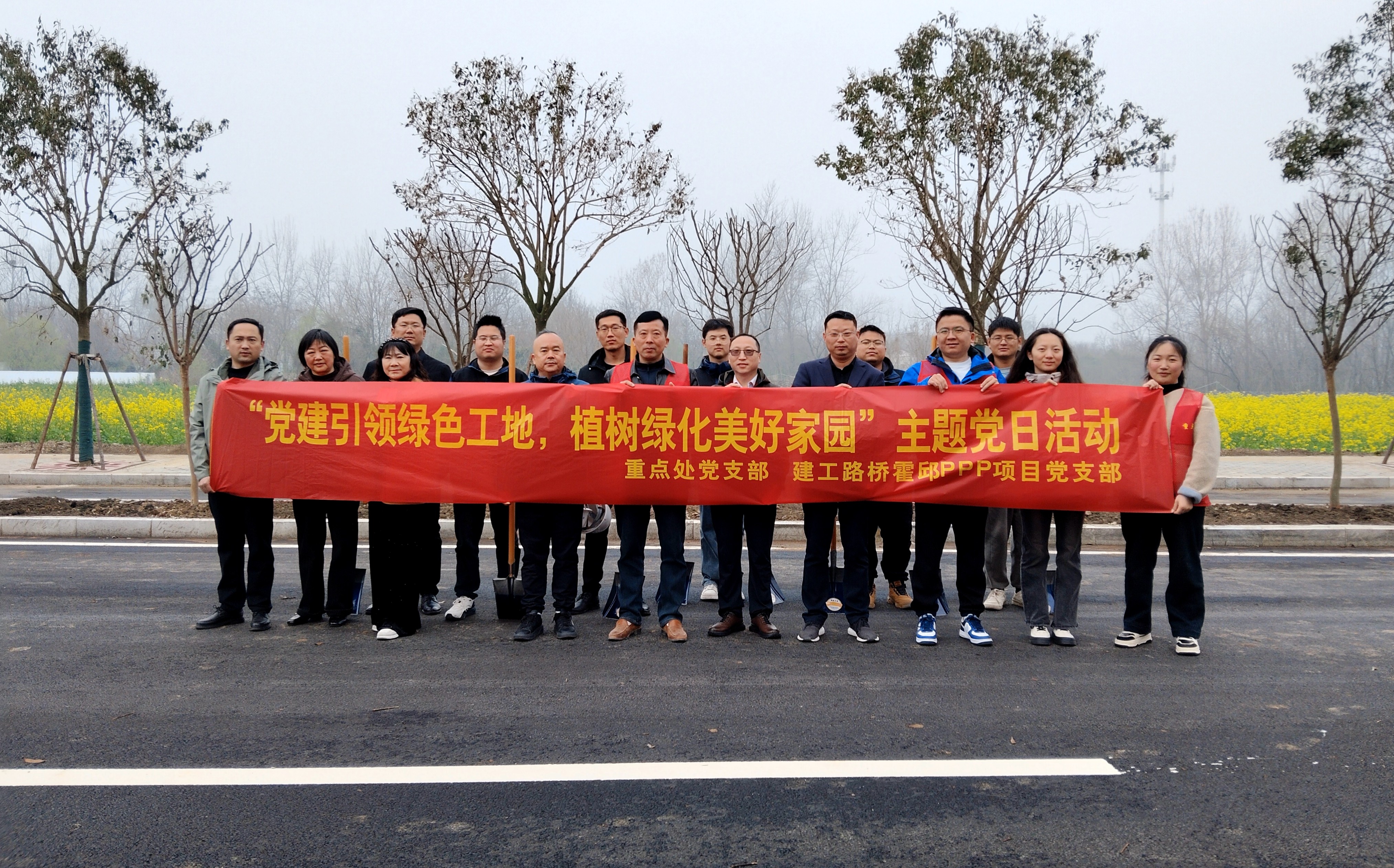 霍邱PPP项目党支部联合县重点处和项目公司开展“党建引领绿色工地,植树绿化美好家园”主题党日活动。项目全体党员和青年职工积极行动,不负春光添新绿。