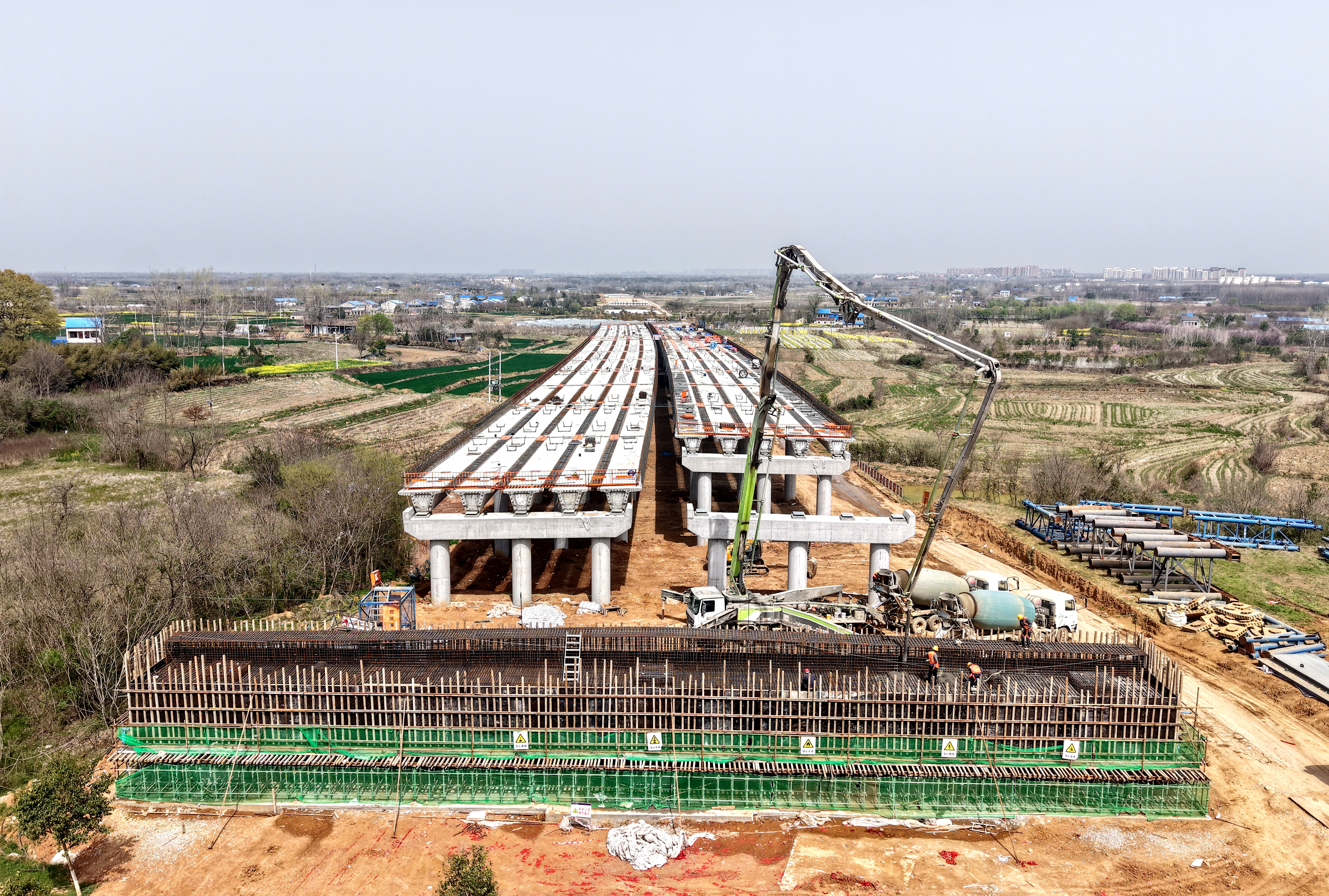 春晖大干正当时 | 淮桐高速合肥段路基2标淠河总干渠大桥主桥首座盖梁浇筑完成