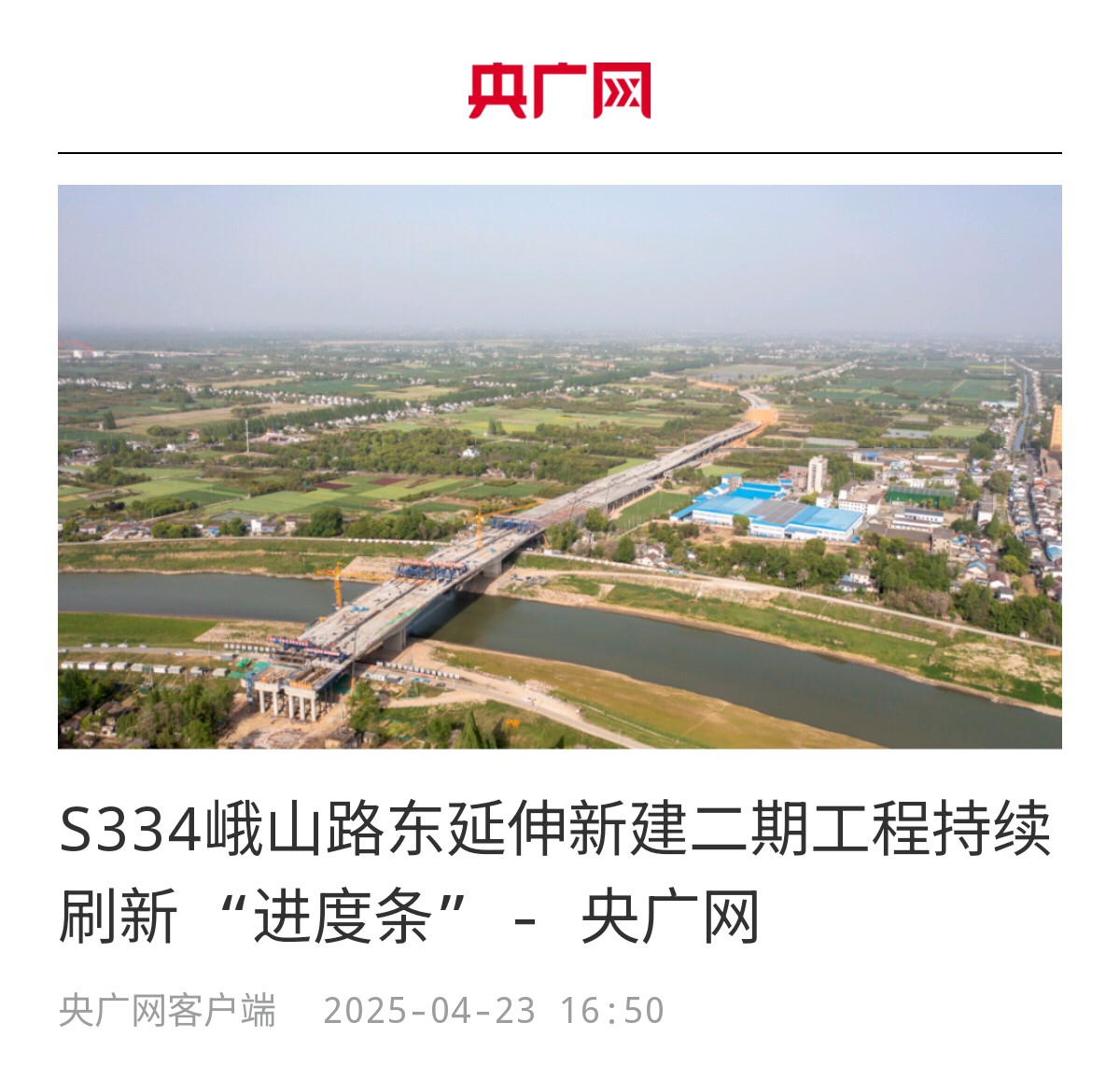 【名媒聚焦】央广网:S334峨山路东延伸新建二期工程持续刷新“进度条”