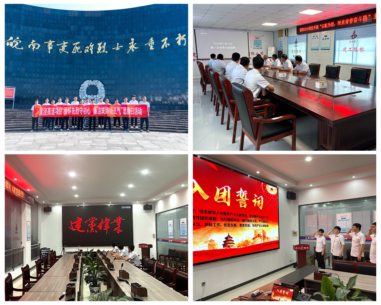 宣泾高速项目团员青年赴泾县皖南事变烈士陵园,实地感悟先辈不畏牺牲、忠诚担当的精神品格。青阳S219改建项目、天堂寨支线高速等项目组织青年职工观看《1912》《建党伟业》等红色影片,并重温入团誓词,教育引导团员青年牢记革命先辈的英勇事迹,汲取了革命先辈的信仰力量与忠诚担当精神。
