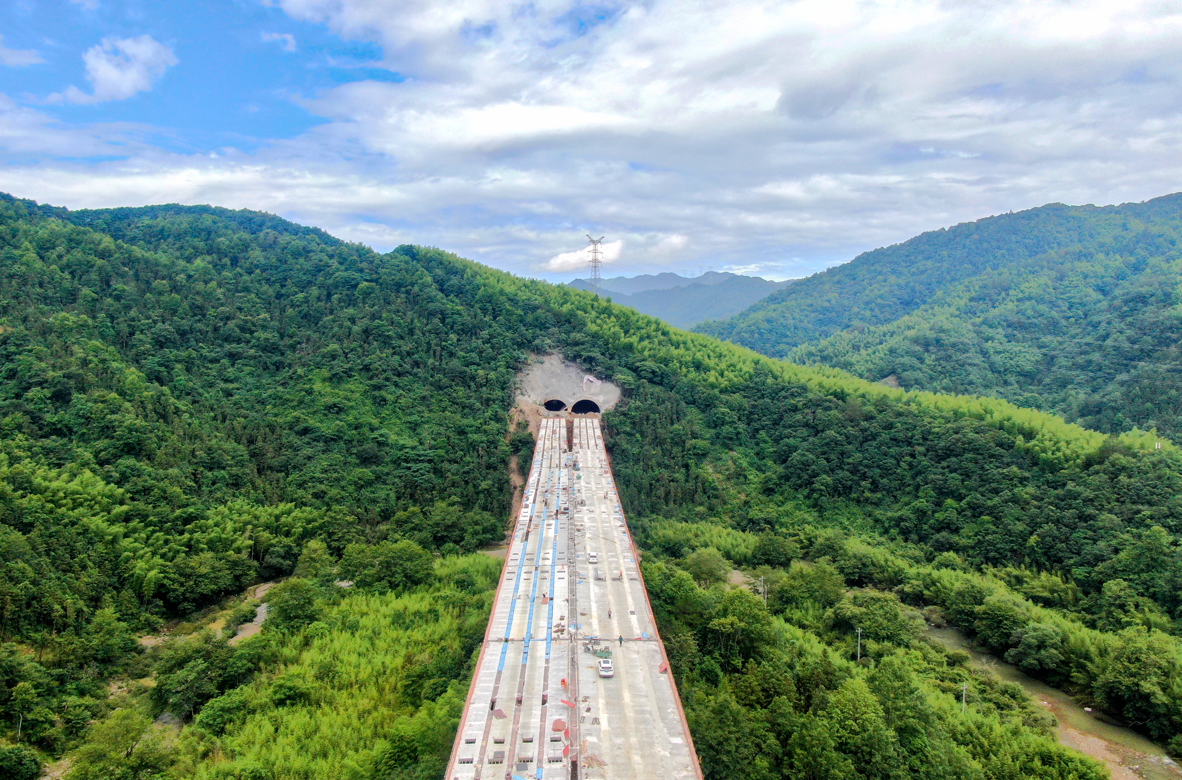 项目紧盯桥梁、隧道等关键节点,加大生产要素投入,科学优化施工方案,动态调整时序进度。采用“中导洞+两正洞”施工方式,历经14个月攻坚,安全高效实现新岭脚隧道贯通目标;面对安全风险大、工艺要求高等挑战,严格把控支架搭设、预压、浇筑等关键环节,全方位保障了现浇梁施工的顺利完成。
