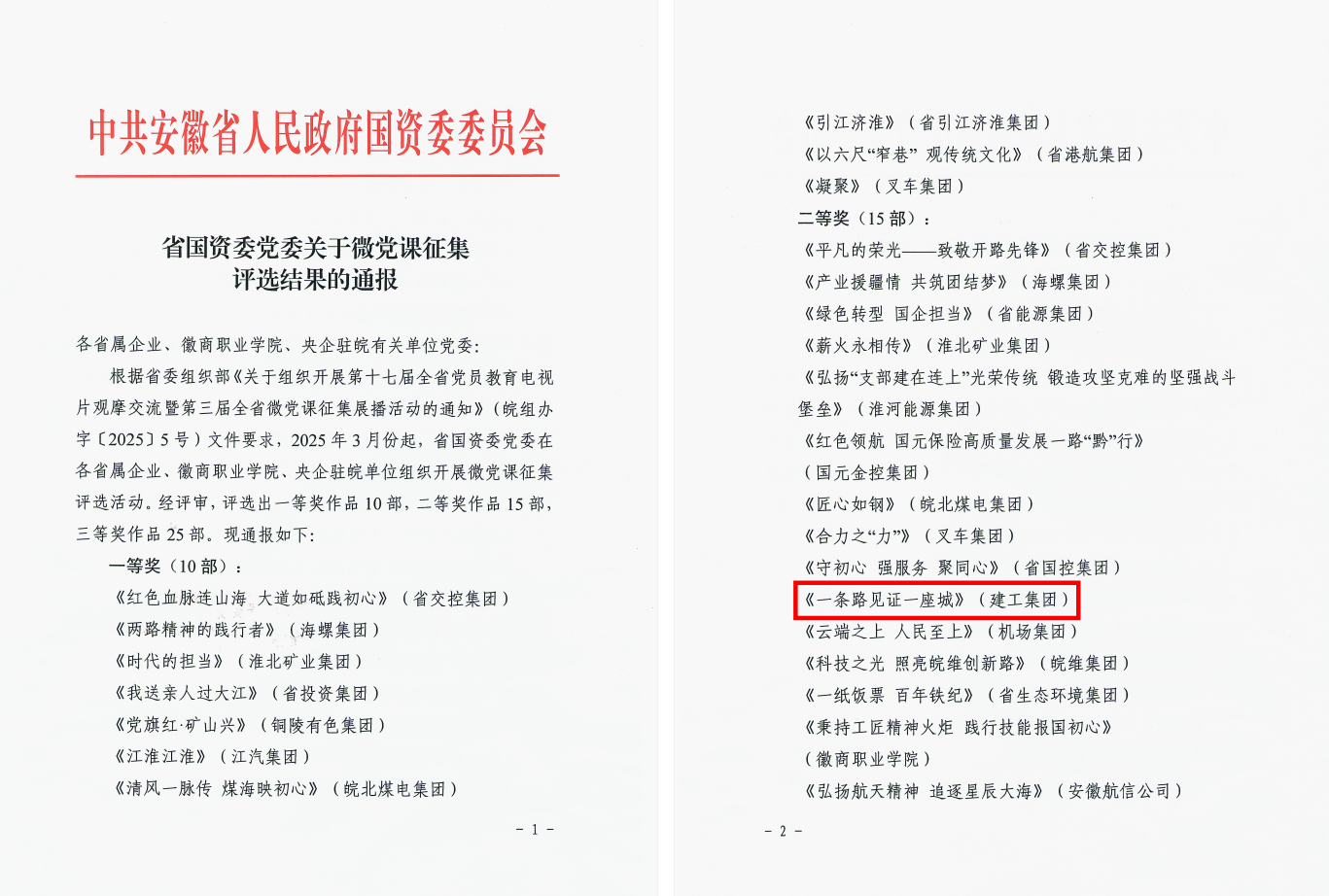 7月1日,由安徽省国资委主办的“牢记嘱托 感恩奋进”主题微党课征集评选活动结果正式揭晓。公司选送的微党课作品《一条路见证一座城》凭借深刻的主题内涵与独特的叙事视角,荣获二等奖。