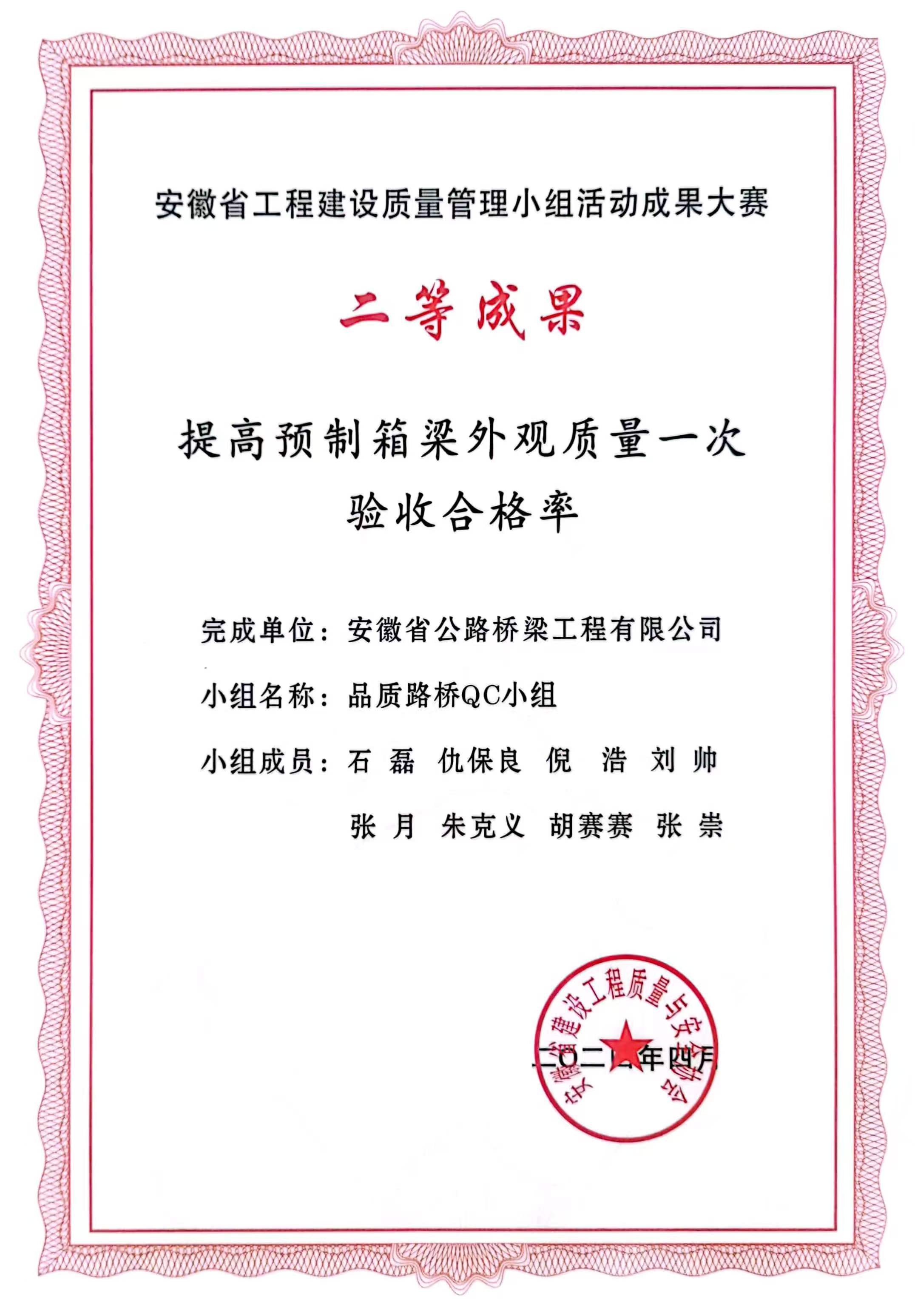 质量是工程的根本,更是企业的立身之本。项目党支部聚焦品质提升,组织党员技术骨干成立攻关小组,紧盯桥梁施工等关键技术难点,落实事前预防、事中控制、事后检测的全过程质量管理机制,尤其在结构物钢筋保护层控制上成效显著,箱梁、盖梁、墩柱等保护层合格率均稳定在90%以上,赢得业主及监理高度肯定。同时,项目积极推广应用新技术,如布灰机撒布石灰、桩基成孔检测、桥面系铺装可移动台车、灌注桩施工全过程监控等,有力提升了施工效率与工程质量。项目申报的“提高预制箱梁外观质量一次验收合格率”课题荣获省QC二等奖,还摘得2024年省重大项目建设劳动竞赛三等奖及业主年度劳动竞赛优胜单位称号。项目工会驿站自2023年10月建成使用以来,累计举办应急演练、技能培训、普法宣讲、爱心慰问、反诈宣传等活动数十次,服务超600人次,有效提升产业工人队伍整体素质和技能水平,被芜湖市总工会授予“五星级户外劳动者服务站点”称号,成为“党建+质量”融合的创新实践平台。