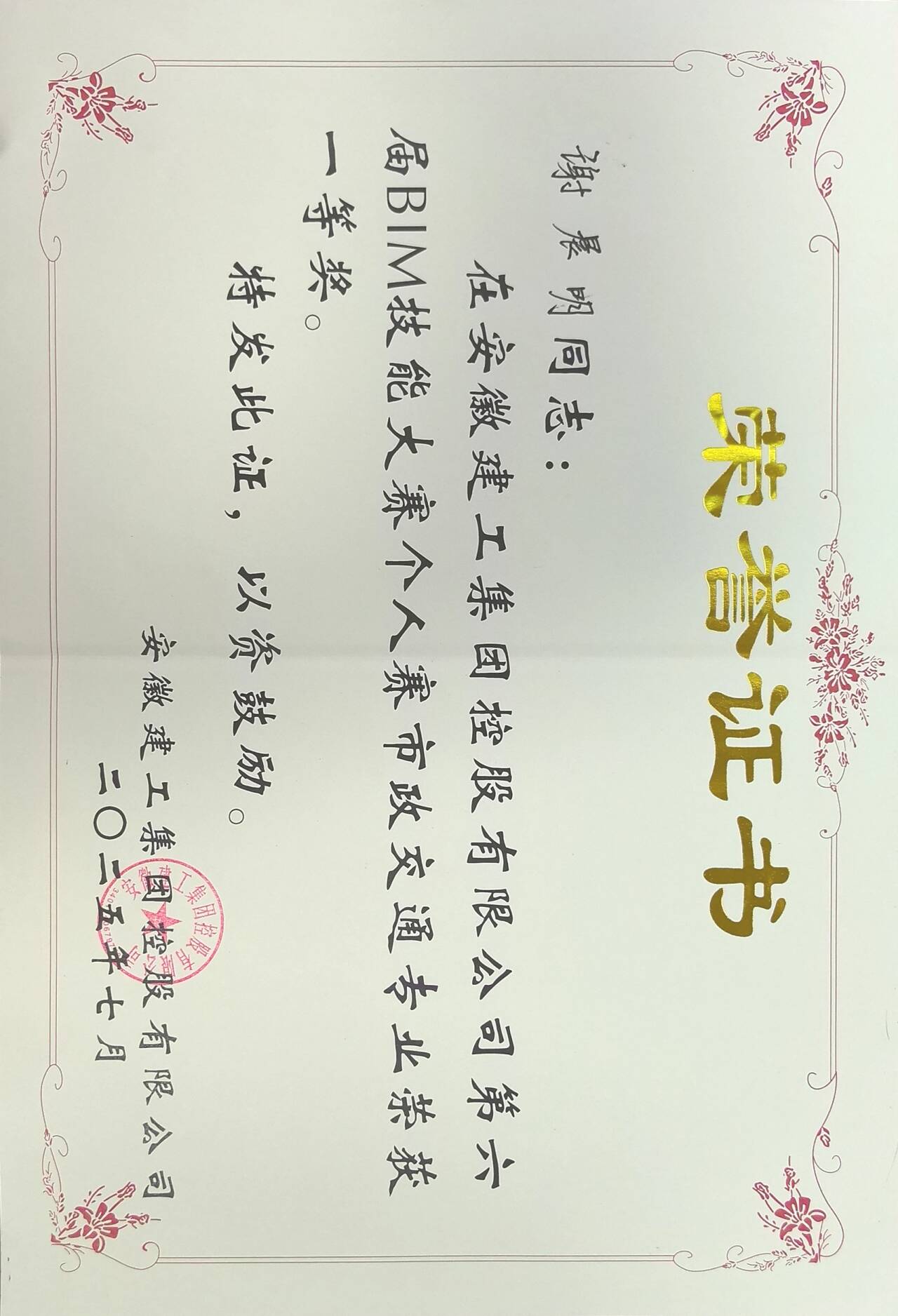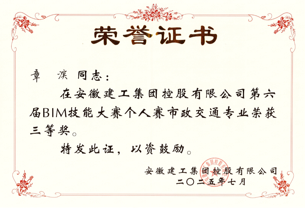 公司参赛队伍由市政公司谢晨明、合肥分公司张安强和公路二公司章滨三人组成,其中谢晨明荣获市政交通专业一等奖,张安强荣获建筑机电专业一等奖,章滨荣获市政交通专业三等奖。