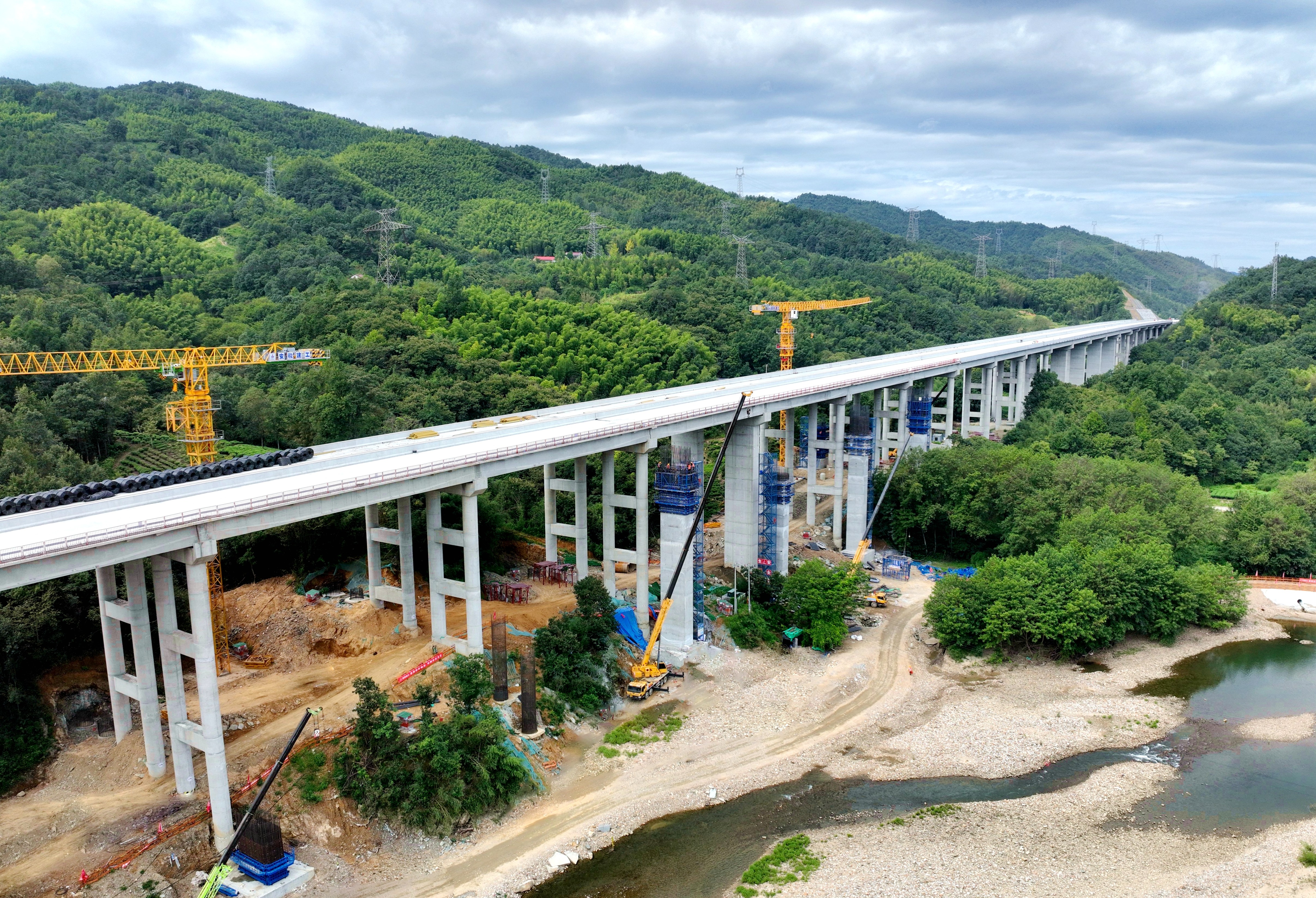 青山枢纽是项目起点,与在建的和襄高速(六安段)连接,肩负着两条高速“牵手”的使命。新建枢纽由5座匝道桥和1座拼宽桥组成,均为高墩柱、大跨径桥梁,其中A、C两条匝道需要对和襄高速十里溪大桥拼宽施工。项目技术负责人孙维龙告诉记者,“和襄高速预计2025年底实现全线通车,该枢纽也要在年底前完成桥梁主体结构施工”。
