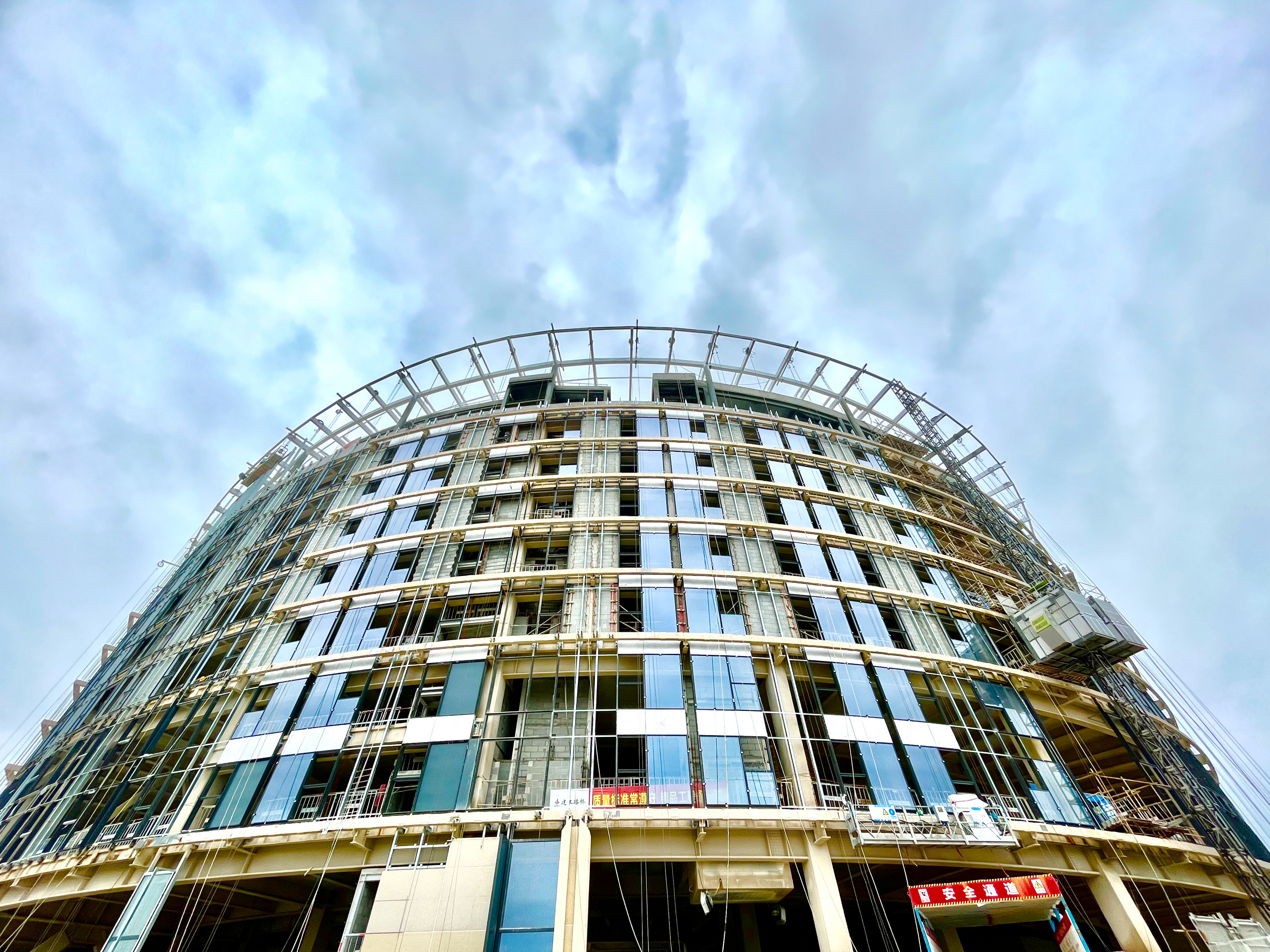 幕墙首批玻璃安装完成