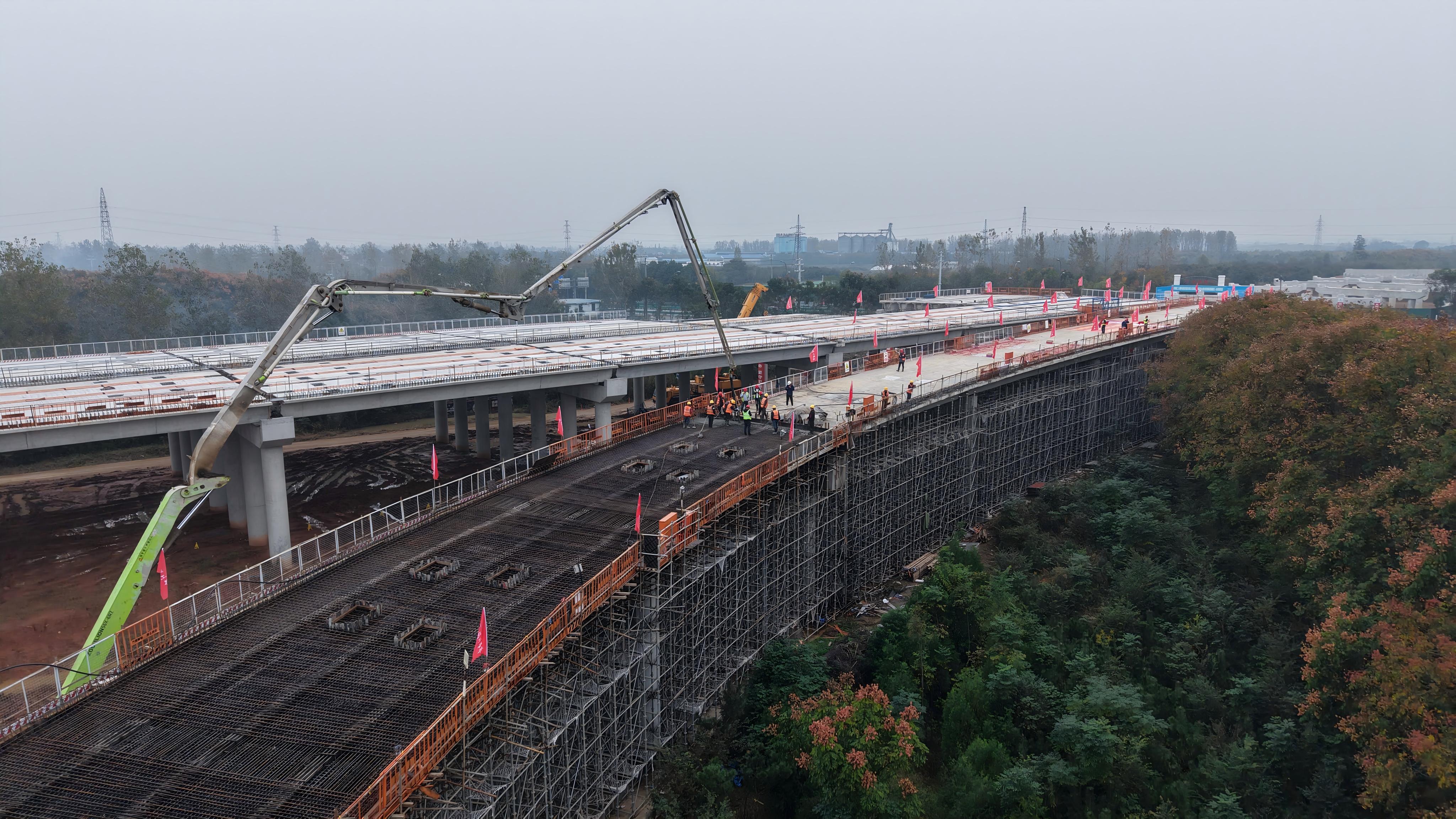 近日,淮桐高速合肥段-2标大柏互通D匝道最后一联现浇梁施工顺利完成浇筑,标志着项目现浇梁施工圆满收官。