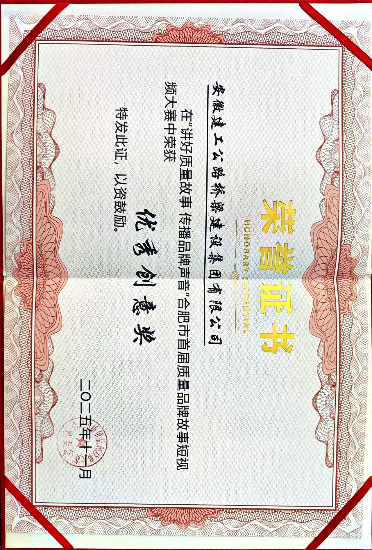 近日,合肥市2025年质量品牌故事短视频大赛颁奖典礼圆满落幕。公司参赛作品《井中智造:360°旋转智能布料机浇筑合肥质量新高度》荣获“优秀创意奖”。