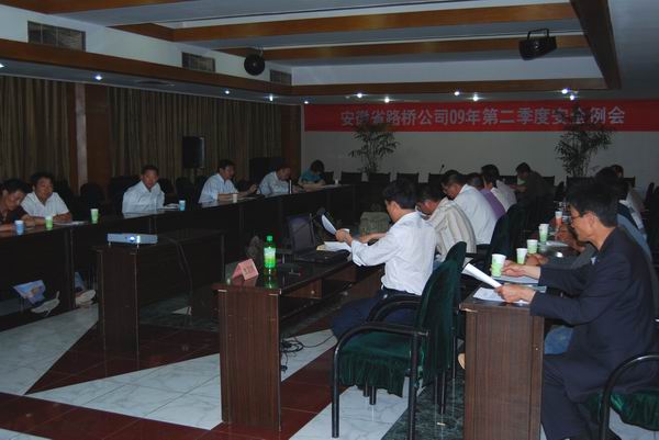 5月8日下午18:00——20:30,公司在绩溪宾馆四楼会议室召开了2009年第二季度安全例会。会议由公司总经理汪卫东主持。公司安委会成员、直属单位负责人、项目经理及专职安全员共48人参加了此次会议。