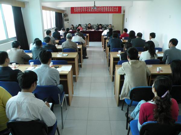 5月21日上午8时30分,公司在四楼会议室召开了学习实践活动分析检查阶段动员大会。公司党委书记、学习实践活动领导小组组长陈光磊作动员讲话,公司总经理、学习实践活动领导小组副组长汪卫东就分析检查阶段工作作了具体部署和安排,集团公司学习实践科学发展观活动第二指导督查组组长李鹏飞同志、副组长潘琳同志到会指导,李鹏飞发表重要讲话。会议由公司总工程师、学习实践活动领导小组副组长彭申凯主持。公司领导班子成员、公司所属各党支部负责人、机关全体党员及各单位、各项目的党员代表50余人参加了会议。