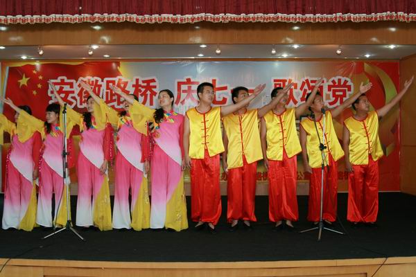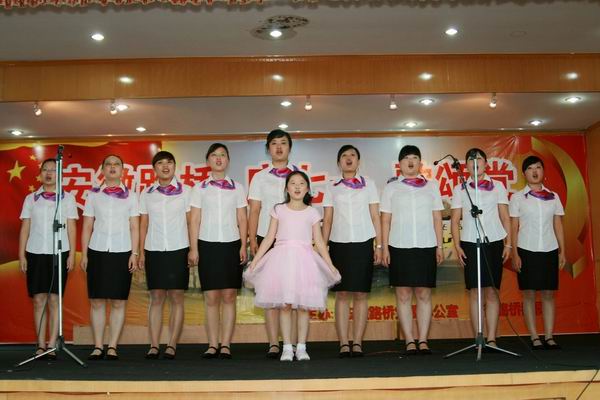 紧接着,庆七一,歌颂党职工歌咏大赛开始。比赛在路面公司激昂的《没有共产党就没有新中国》合唱声中拉开序幕,比赛场上,参赛队员精神饱满,着装整齐,怀着对中国共产党、对祖国的深厚感情,热情高歌《今天是你的生日我的中国》、《爱我中华》、《歌唱祖国》、《精忠报国》、《咱们工人有力量》、……发自肺腑的歌声深深感动了现场观众。