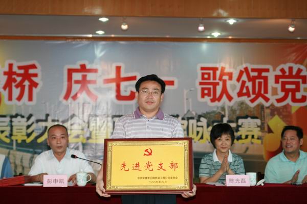 会上,公司党委委员、总工程师彭申凯同志宣读了公司党委《关于表彰公司2008年度先进党支部、优秀党务工作者、优秀共产党员的决定》以及《关于纪念改革开放30周年征文、摄影活动获奖情况通报》。在欢快的乐曲声中,公司领导为先进党支部、优秀党务工作者、优秀共产党员颁发了奖牌和证书;为征文的获奖作品颁发了纪念品。
