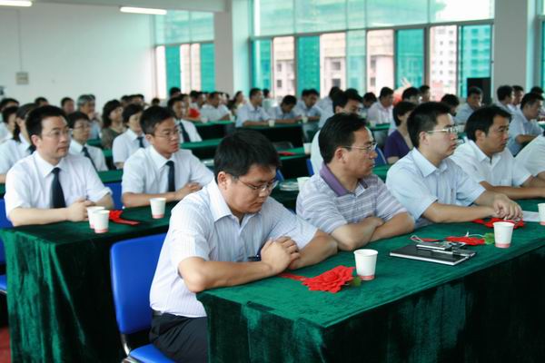 会议在雄壮的《国际歌》声中开始。党委书记陈光磊作了《牢记宗旨、珍惜荣誉、勇往直前》激情洋溢的讲话。她说:今天我们大家在此欢聚一堂,纪念我们伟大的中国共产党成立88周年,并对公司2008年度的先进基层党组织和优秀党员、党务工作者进行集中表彰。这是一个喜庆的日子,也是一个值得纪念的日子。在此,我谨代表公司党委对所受表彰的先进单位和个人表示热烈的祝贺,向公司所有的党员表示崇高的敬意。接着她深情回顾了党的光辉历程,同时要求我们也应该更加自觉地牢记党的宗旨,在自己的工作岗位上勤奋、踏实、敬业的工作,为党徽增光,为党旗添彩。随后,陈书记对2008年的党委工作进行了回顾总结,并对2009年下半年就如何进一步加强党的建设,深入学习实践落实科学发展观,更好地发挥党组织的政治核心作用、战斗堡垒作用和党员的先锋模范作用,提了几点要求:一、继续认真开展学习实践科学发展观活动,充分认清制约公司科学发展的问题,并有效整改,使公司走上科学发展的轨道;二、转变观念,找准党建工作的“切入点”,积极主动的融入中心工作,充分发挥基层党组织的战斗堡垒作用;三、充分发挥共产党员先锋模范作用,增强号召力、凝聚力、战斗力。最后,陈书记号召全体党员把全部心思和精力集中到加快公司发展上,把各方面的力量凝聚到加快公司发展上,把共产党人的先进性体现到加快公司发展上,以更加饱满的热情、更加务实的精神、更加积极的工作状态投入到各项工作中去,团结带领公司广大员工,努力把握发展的大好机遇,为促进安徽路桥的稳健发展做出新的贡献。