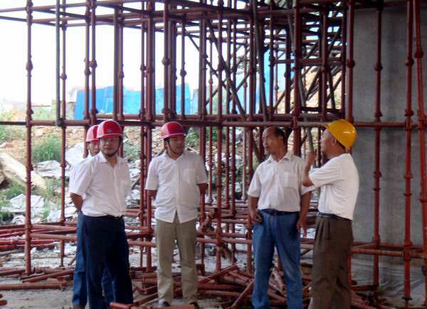 汪总一行,先后来到大桥北岸、南岸工地现场实地察看工程进展情况,看望并亲切慰问了奋战在建设一线的广大工人。当前北岸引桥正在进行第二跨箱梁钢筋绑扎及内模安装工作、南岸正在进行紧张的主桥索塔及引桥施工。
