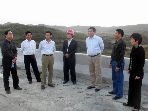 22日,绩黄高速02标项目横幅高挂、彩旗飘飘,项目部内环境干净整洁,施工现场忙碌有序。“热烈祝贺安徽建工集团入选全球最大225强国际承包商 ”、“热烈祝贺安徽建工集团荣膺2009中国企业500强”两条醒目的横幅给项目部增添一种庄重喜庆的气氛。下午5时许,张海平书记一行一到项目部,就直接来到施工现场,看望慰问一线施工人员,察看现场施工情况。项目经理张庆书汇报了项目工程进展情况,当听到我部工程量现已完成88%,进度在全线处于领先地位时,张书记露出了欣慰的笑容。同时绩溪县指挥部领导对我部工程也做了充分肯定。张书记听后讲到,“首先要感谢县委县政府给我们提供了一个良好的地方环境,这些成绩的取得离不开地方的支持。希望项目部趁势而上、继续努力,在进度、质量、安全以及文明施工方面做好做强,始终处于‘领头羊’的位置。”