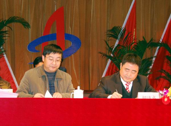 集团公司董事长、总经理胡运成与公司总经理汪卫东签订2010年生产、经营目标责任书