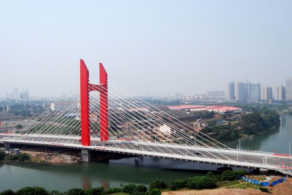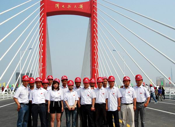公司自承建该桥以来,携手省交通规划设计院、省高等级公路工程监理公司、合肥工业大学(监控方)倾心倾力地投入到大桥的建设中,克服结构新颖复杂,建设时间紧,施工难度大等困难,充分运用新技术、新工艺、新材料,首次采用斜拉桥主桥塔梁同步的施工工艺,极大的缩短了施工工期;同时在施工中保质量、抢进度、重安全,实现了安全生产零事故的目标,圆满地完成大桥建设任务。整个建设周期16个月,比常规工期提前半年通车。