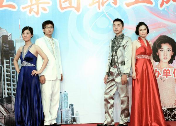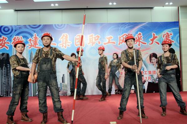 公司12名职工分别展示了三套服装。第一套职业装突破了传统职业装的局限,以背带牛仔工装裤为主,别具一格。再搭配安全帽、对讲机等施工现场道具,将路桥的职业特性展示的淋漓尽致,在众多参赛队伍中独树一帜。第二套时装,由六位女职工身着缀满亮片的五彩短裙,在轻快动感的音乐下,充分展现了女职工的青春活力。第三套艺术装,以晚礼服为主,四位男职工风度翩翩,四位女职工婀娜多姿,凸显了路桥儿女的别样情怀。