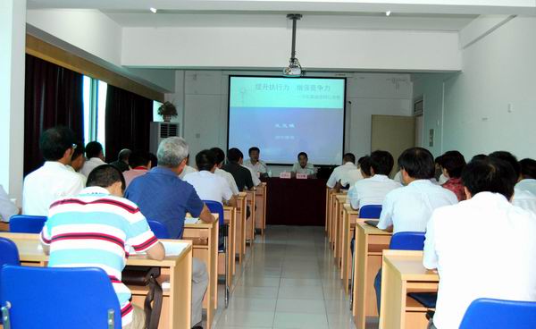 王总先从执行力的概念出发,深入浅出地给大家讲解了执行力的基本理论,并从领导层的执行力到中层干部的执行力,从团队精神到个人责任心,将有执行力的领导特点和个体特点逐一进行了深入地分析。整个讲座过程,王总客观的摆事实,幽默风趣的讲道理,把执行力与企业竞争力的关系分析的十分透彻,赢得了与会者的阵阵掌声。