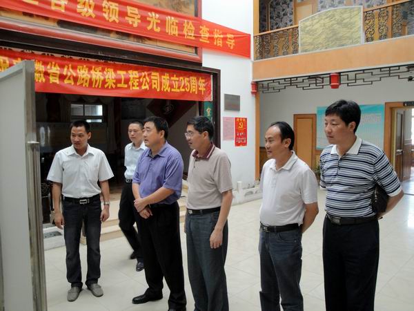 在A匝道施工现场,胡董事长和该项目经理冷峰进行了亲切交谈,详细询问该项目目前土方及桥梁的施工进展情况以及施工的外围环境状况等。随后,在项目部会议室,冷峰经理结合施工形象进展图就目前整个项目的进度、质量、安全等情况一一做了汇报。胡董事长听后,对该项目目前的工作了给予肯定;同时要求该项目继续发扬省路桥公司的优良传统,再接再厉,全面落实好项目的总体施工计划。冷峰经理表示,该项目全体员工一定会按照集团和公司的要求,精诚团结,保安全,抓质量,抢进度,如期完成业主下达的年内完成主体工程的任务目标。