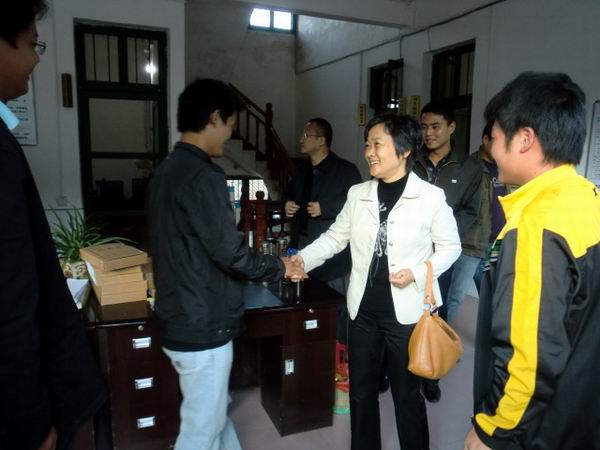 在临时项目部,陈书记、陆总亲切的和每位员工一一握手,向大家表示慰问,并分别对项目部党群工作、财务管理工作提出具体要求和指导意见。