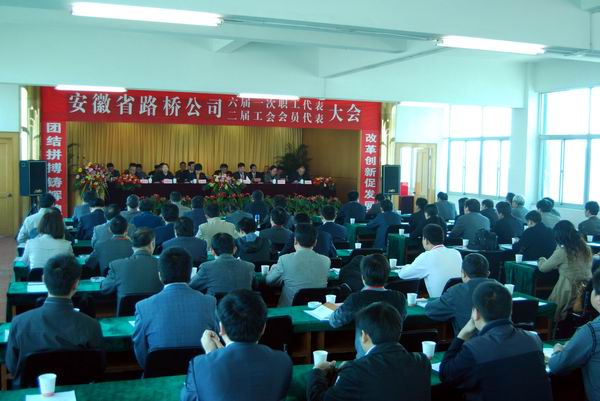 上午8:30分,大会正式开始,全体代表起立,奏响激昂雄壮的国歌。会上,汪总作了题为《以战略为统领,以管理为基石,以文化为保障,为构建安徽路桥“十二五”发展体系而努力奋斗》的工作报告。报告分为四个部分:一是2010年公司工作;二是“十一五”工作回顾;三是“十二五”战略规划;四是2011年工作重点。报告指出2010年是公司成立二十五周年。在这继往开来的一年里,在集团公司的正确领导下,全体路桥人共同努力,深入贯彻落实科学发展观,树立品牌战略,夯实基础管理,提升发展质量,各项工作扎实有效推进。各项指标在集团系统名列前茅,连续四年无安全和质量责任事故,通过了职业健康和安全管理体系、环境管理体系、质量管理体系“三合一”贯标认证,荣获了“黄山杯”等市厅级各类荣誉16项,集团公司级各类荣誉50余项。公司继续保持着稳定快速的发展态势,圆满完成了“十一五”收官之作。