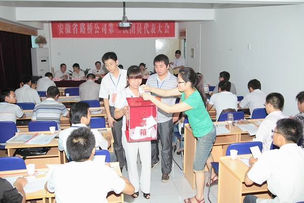 上午8点15分,大会在庄严的《国歌》声中正式开始。公司工会胡运春主席和省建科院团委操雪荣书记分别向大会致贺词。大会认真听取、审议并通过了公司团委副书记曹勇同志代表公司团委所作的题为《紧跟党的步伐 围绕中心工作 团结带领全体团员青年为公司发展贡献青春力量》的工作报告。会上,代表们充分履行自己的选举权利,郑重而又庄严的往投票箱里投入选票。通过严格的选举程序,曹勇、邢静、李艾梅、王介、徐礼宝、赵明星、王强七位同志当选为公司第二届团委委员。大会通过了安徽省路桥公司第二次团代会决议,号召各级团组织、全体共青团员紧跟党的步伐,服务团员青年,团结带领全体团员青年为公司发展贡献青春力量。