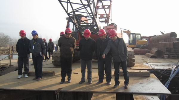 殷书记一行先后到箱梁预制场、钢筋加工场、主墩钢围堰进行了现场查看,并听取了该项目负责人关于项目施工管理情况的汇报。在座谈会上,殷书记对项目部前期取得的成绩给予了充分肯定,也指出了存在的不足。周科长就实地查看的情况进行了总结,指出从目前检查情况来看,路基11标在施工质量上是下了功夫的,并鼓励大家再接再厉,安全、优质、高效地完成这座特大桥的建设。