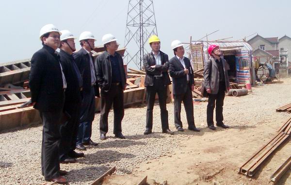 戴总一行首先来到宣狸改建L4标北山河大桥施工现场,对北山河桥挂篮及主桥施工进行了细致的了解,并听取了L4标项目经理江仲明关于工程质量与进度、安全文明施工方面的汇报。随后,在L5标项目经理刘冬的陪同下,戴总一行察看了L5标全线的生产和进度情况,对工程目前阶段的重点和难点给予了建设性指导意见。