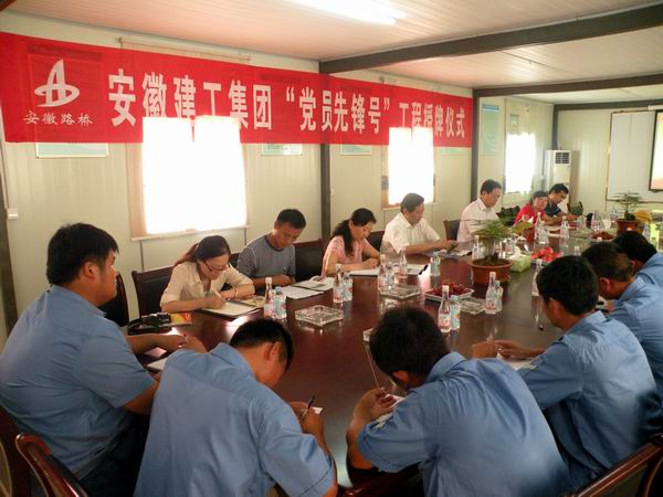 10点左右,李书记、牛书记一行来到项目会议室举行“党员先锋号工程”授牌仪式。会上,公司、国内公司及市政分公司分别就争创“党员先锋号工程”情况做了具体汇报。会上,李书记和牛书记分别作了重要讲话。李书记就项目“党员先锋号工程”创建情况谈了三点感受:一是创建工作务实,内容具体;二是创建工作主题突出,有自己的特色;三是创建队伍有生机、有朝气。就“党员先锋号工程”创建下步工作,李书记提出三点要求:一是创建工作要围绕生产中心进行;二是要拓宽创建活动范围,要逐步将活动延伸到合作队伍和农民工中;三是创建工作要建立长效机制。牛书记指出公司市政项目“党员先锋号工程”创建工作开展的很好,很有特色,对项目在人文关怀方面的工作给予了充分肯定,对项目员工表现出的朝气表示欣赏,并对安全生产、职工生活等方面工作做提出了具体要求。