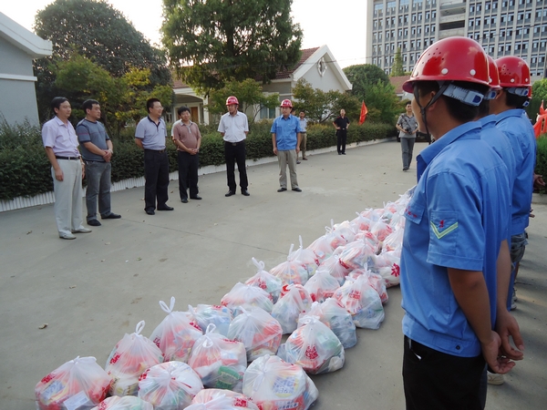 下午5时,宁世明副区长一行来到怀宁北路1标施工现场,向冒着酷暑辛勤工作的广大一线员工表示亲切慰问。宁副区长关切的询问员工们的生活情况及高温天气下的作业时间安排,并亲手送上绿豆、白糖、纯净水、毛巾、风油精等防暑降温物品。宁副区长要求有关部门全力做好高温季节各项工作,并叮嘱工程负责人,无论工期多紧,也要做好安全生产工作,夏天气温高,要合理安排施工时间,在保证工程质量、进度的同时,确保工人们劳逸结合,身体健康。