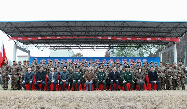 下午,在合肥警备区教导队训练场,红旗招展,彩球飘扬。公司从各单位、各项目抽调的50名队员经过为期一周的军事化训练,精神抖擞、整装待发。15:00时,演示活动正式开始。随着梅厅长一声令下,队员们高举“安徽省公路工程保障大队”旗帜,齐喊口号,跑步进入现场,开始架设。在架设的同时,进行了现场同期声解说。短短30分钟内,队员们分工明确,技术熟练,配合默契。在没有机械设备的情况下,依靠人工肩扛手抬,迅速完成了桁架、桥面板等搭设,将钢桥推过河,随后三辆炮车缓缓通过,进行装备通载检验。至此,战备钢桥架设演示圆满完成。演示活动结束后,领导们上桥检阅,亲切地接见、慰问了参演队员,并合影留恋。