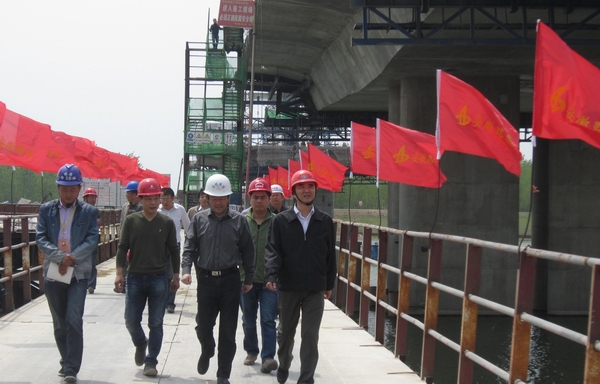 督查中,何局长指出,怀洪新河二号特大桥工程施工难度大、任务重、时间紧,在加快建设的同时更要重视安全管理和工程质量。在安全管理上,要从以人为本的角度做好安全工作,注重预防;在质量管理上,要建立质量控制长效机制。何局长强调,省路桥公司作为一个负责任、有实力的国有企业,在施工安全、工程质量及项目进度上要自我加压,提高标准,进一步提升企业品牌影响力。