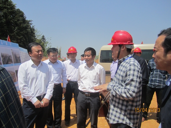 钱书记一行从项目标尾沿线查看路基施工进展情况。在施工现场,钱书记详细询问了施工进展情况。在认真听取了项目负责人对质量、安全、进度等情况的具体汇报后,对项目进展给予了充分肯定,对公司的企业形象给予了高度评价。