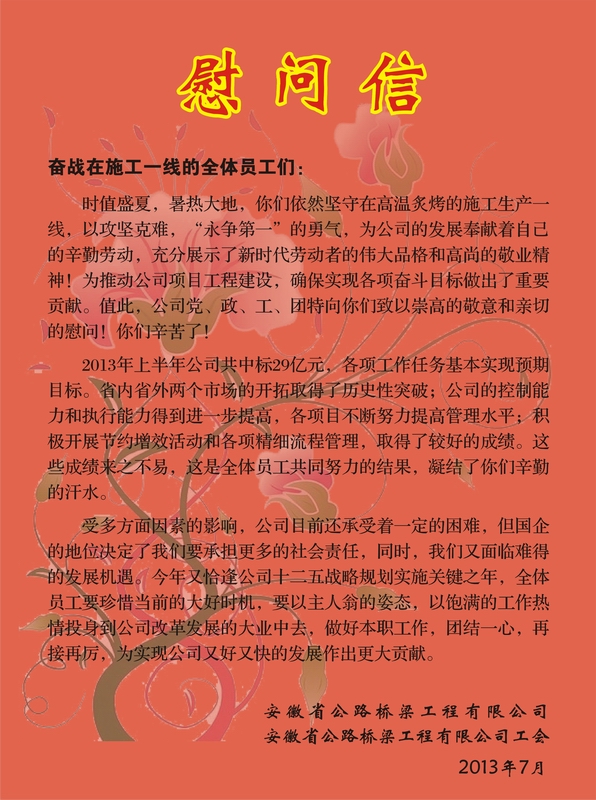 给一线员工的慰问信