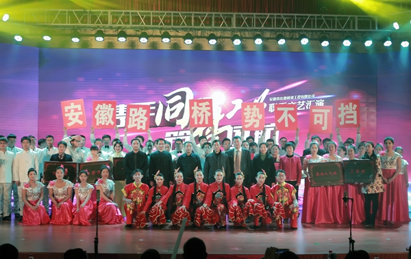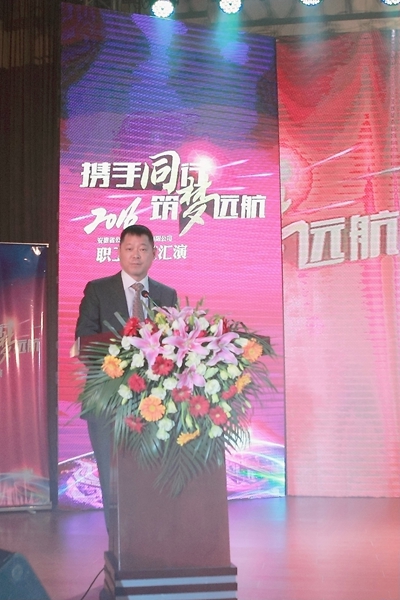 演出现场华灯璀璨,座无虚席,气氛喜庆热烈。汇演正式开始前,公司董事长、总经理孙学军发表了热情洋溢的致辞。他首先代表公司向莅临现场的嘉宾及长期以来坚持在公司各个岗位的员工及家属,致以诚挚的问候和新春的美好祝愿,向默默奉献,为路桥事业奠基的前辈们致以崇高的敬意。指出,2015年,是宏观形势错综复杂的一年,也是公司成绩斐然的一年,在建工集团的正确领导下,全体员工凝心聚力,开拓奋进,取得了骄人的业绩。充满机遇和挑战的“十三五”已经开局,全体路桥人要秉承优良传统,凝心聚力,同舟共济,谱写安徽路桥新的辉煌。