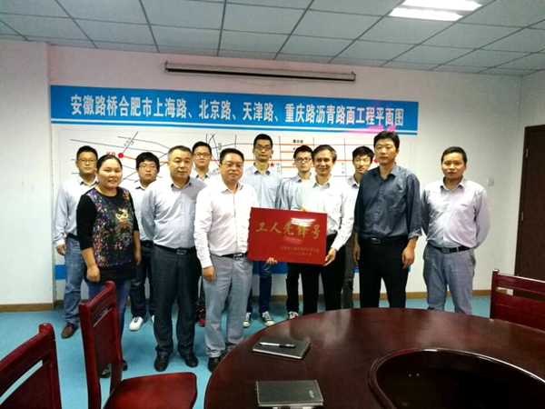 10月18日、20日, 集团公司工会副主席吴晓伍一行来到公司承建的上海路路面项目、池州S321路面项目,分别对 “工人先锋号”和“职工书屋”创建工作进行考核验收。公司工会主席杨建强,总经理助理、路面公司总经理江仲明陪同。