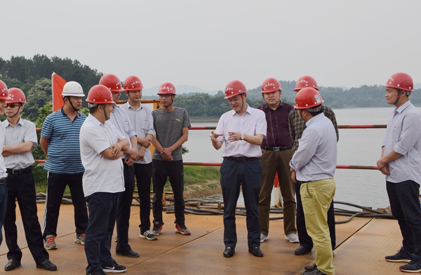 5月24日下午,集团公司副总经理戴良军到万佛湖02标项目检查指导工作,集团总工办副主任崔林钊、公司副总经理、总工程师彭申凯,副总经理任杰陪同。