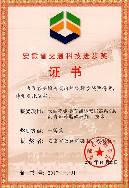 近年来,公司积极实施创新驱动发展战略,充分依托省级技术中心,重点立足新设备、新材料、新工艺运用,大力推进科技创新,持续加强科技成果转化,以科技创新助推企业转型发展、跨越发展、高效发展,取得了良好成绩。此次两项成果荣获省公路学会交通科技进步奖一等奖,充分体现了在公路工程特级资质新发展平台上公司科技创新实力的进一步增强。