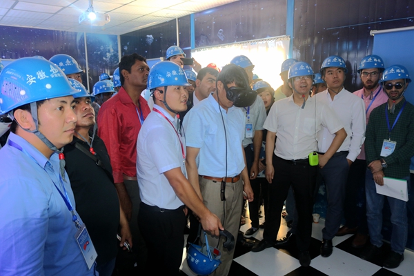 7月2日下午,2018中国与亚洲国家“一带一路”建设合作研修班80余名学员莅临轨道交通4号线01标观摩交流。商务部研修学院仵伟处长出席活动并讲话,安建海外党委书记邢应梅、副总经理谢玉立陪同。